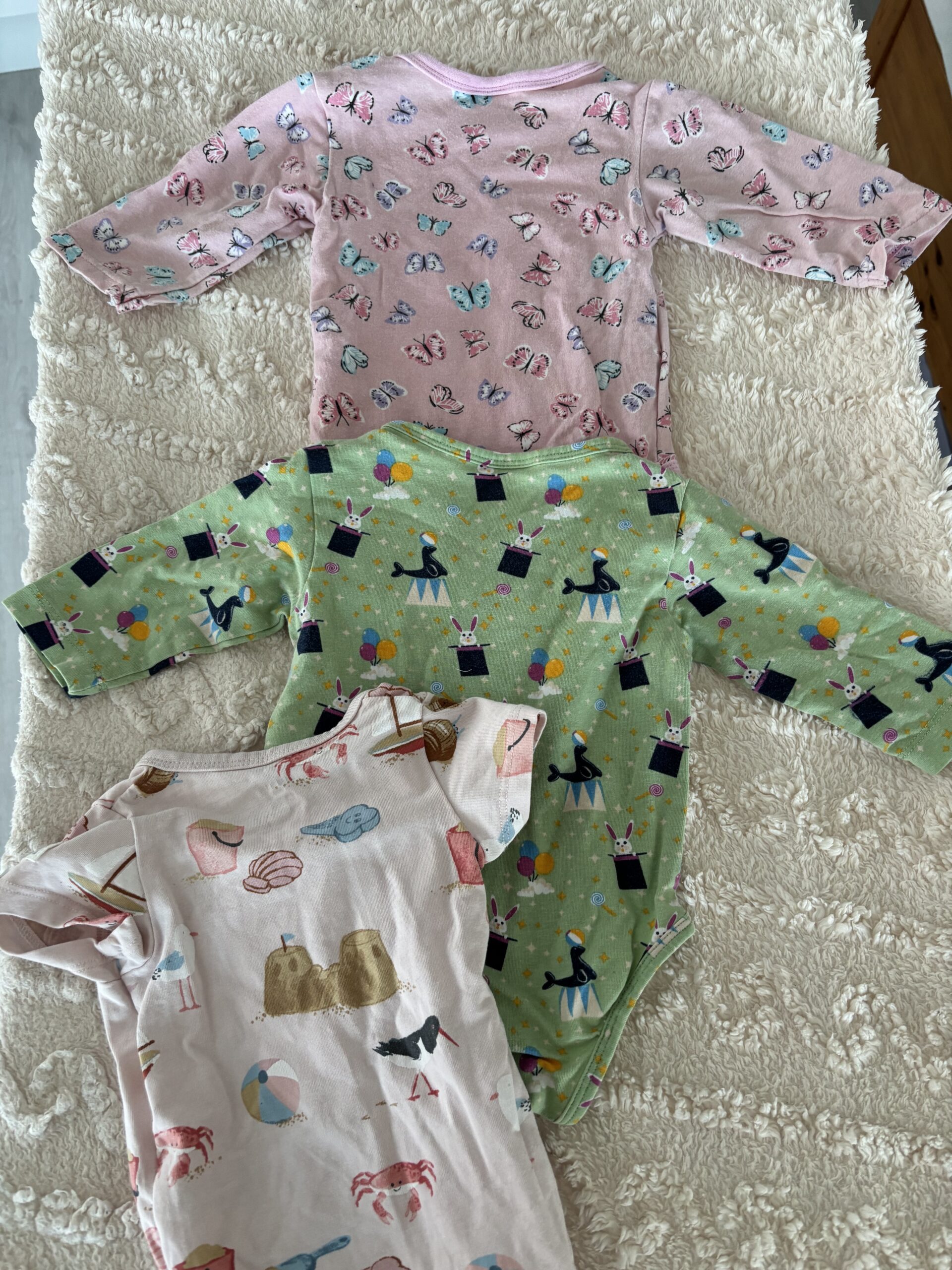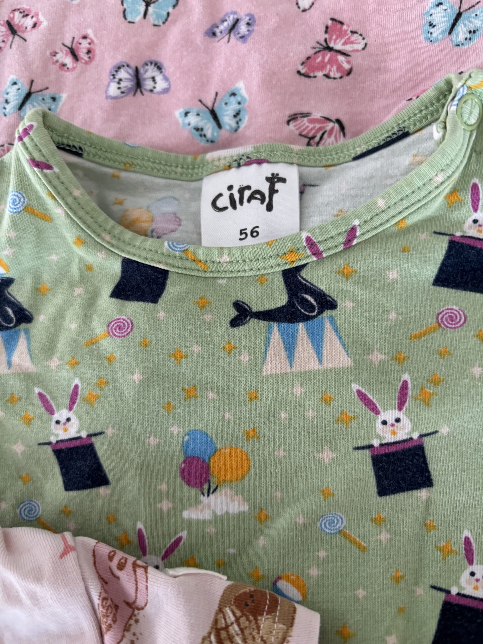 Kaksi Ciraf merkin pitkähihaista bodya ja yksi kietaisu t-paitabody. Hieman haituvaa voi olla pitkähihaisissa mutta kaikki siistejä eikä reikiä.