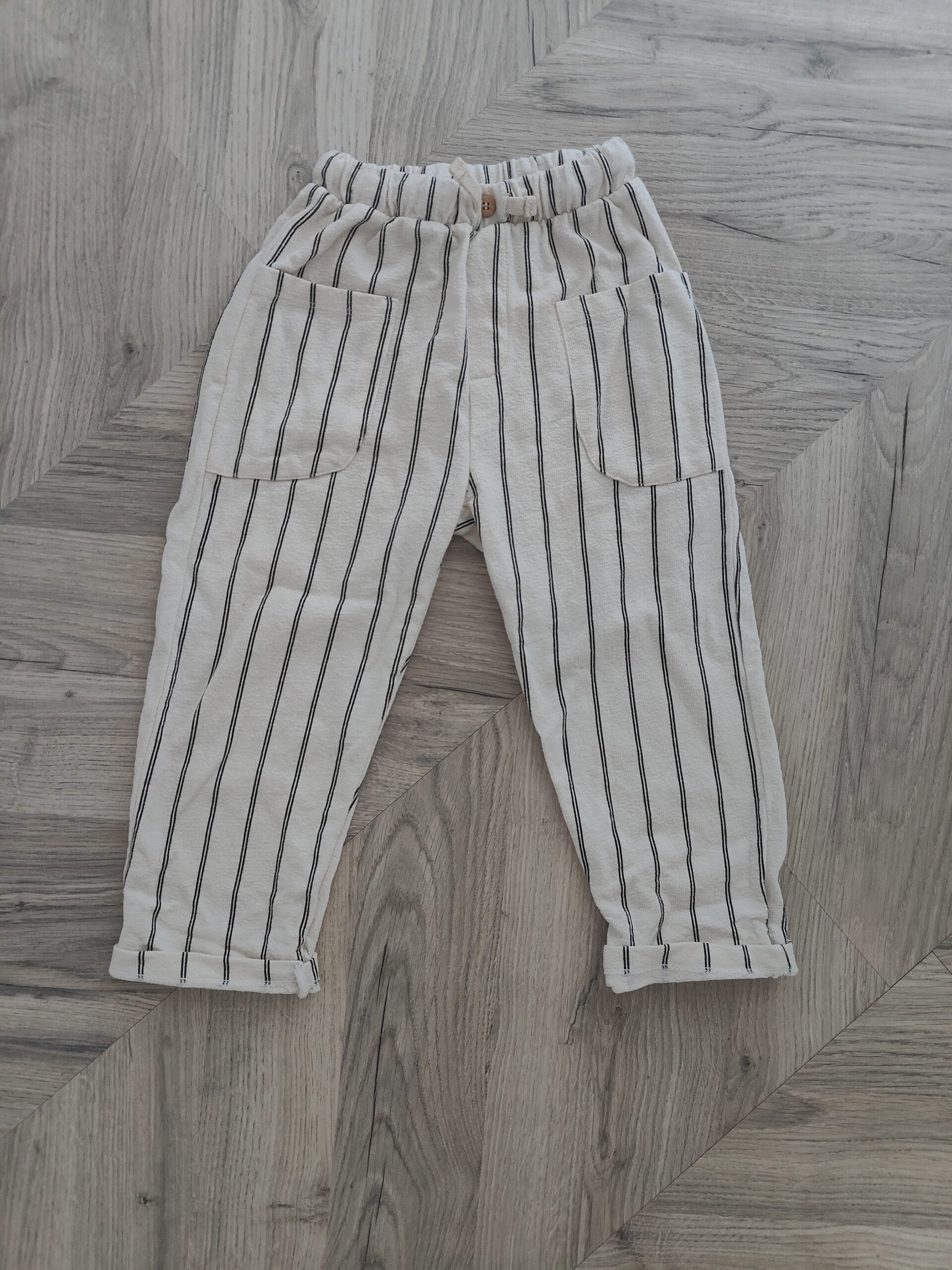 Zaran kevyet housut ( vähän neuletyyppinen ohut kangas ) ihanat kesään koska väljä istuvuus. Erinomainen kunto. Koko 116 , voi käyttää koossa 110/116