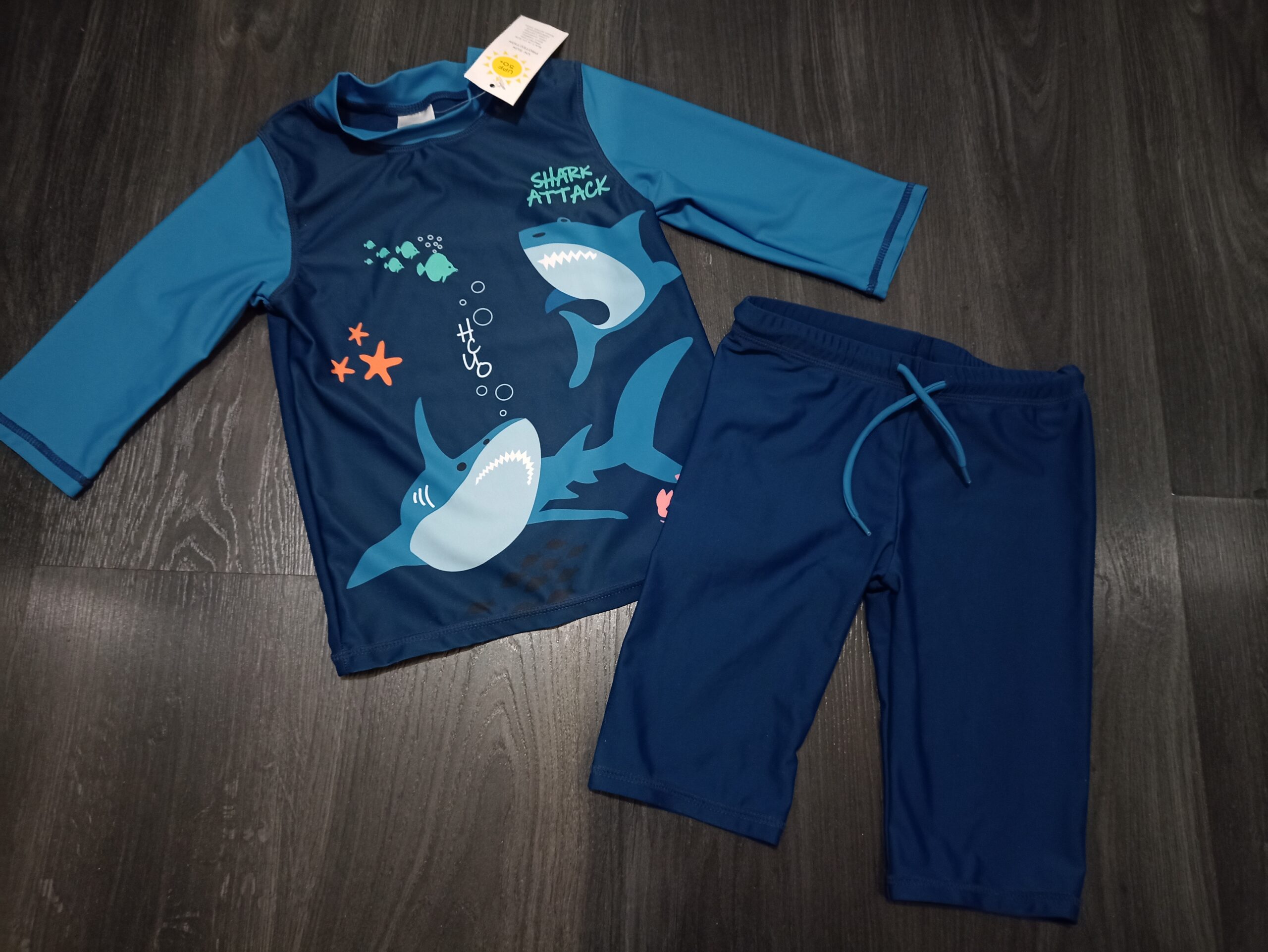 Uusi uv-puku korkealla uv-suojalla (50+). Koko 110/116.