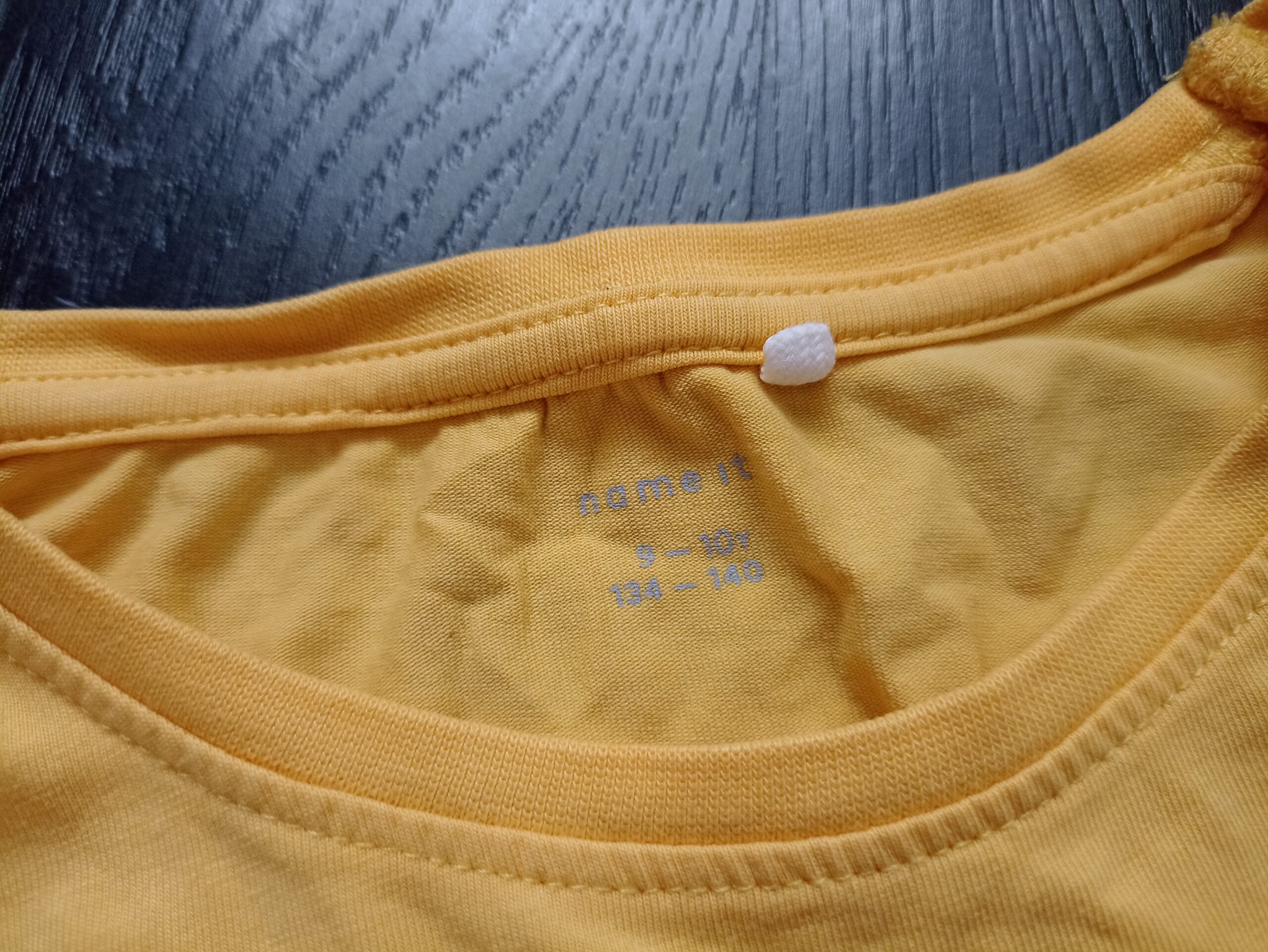 Sis: uudet leggingsit (134) ja siistin Nameitin trikoopaidan (134/140). Paidan hihassa on takana pieni haalea jälki (kts. kuva), muuten oikein hyväkuntoinen. Tuoksuton. Kummankin kangas mukavan joustavaa trikoota.