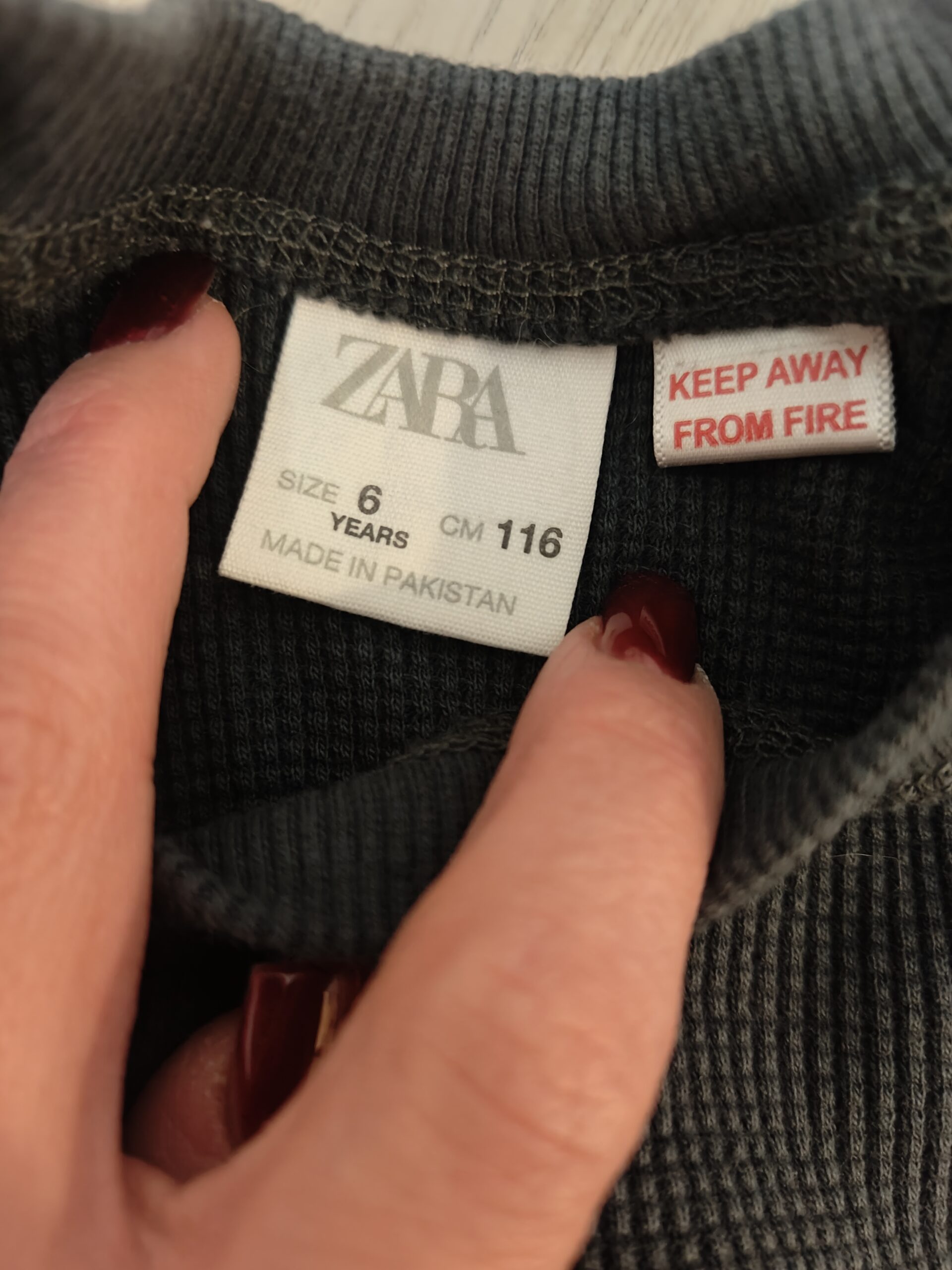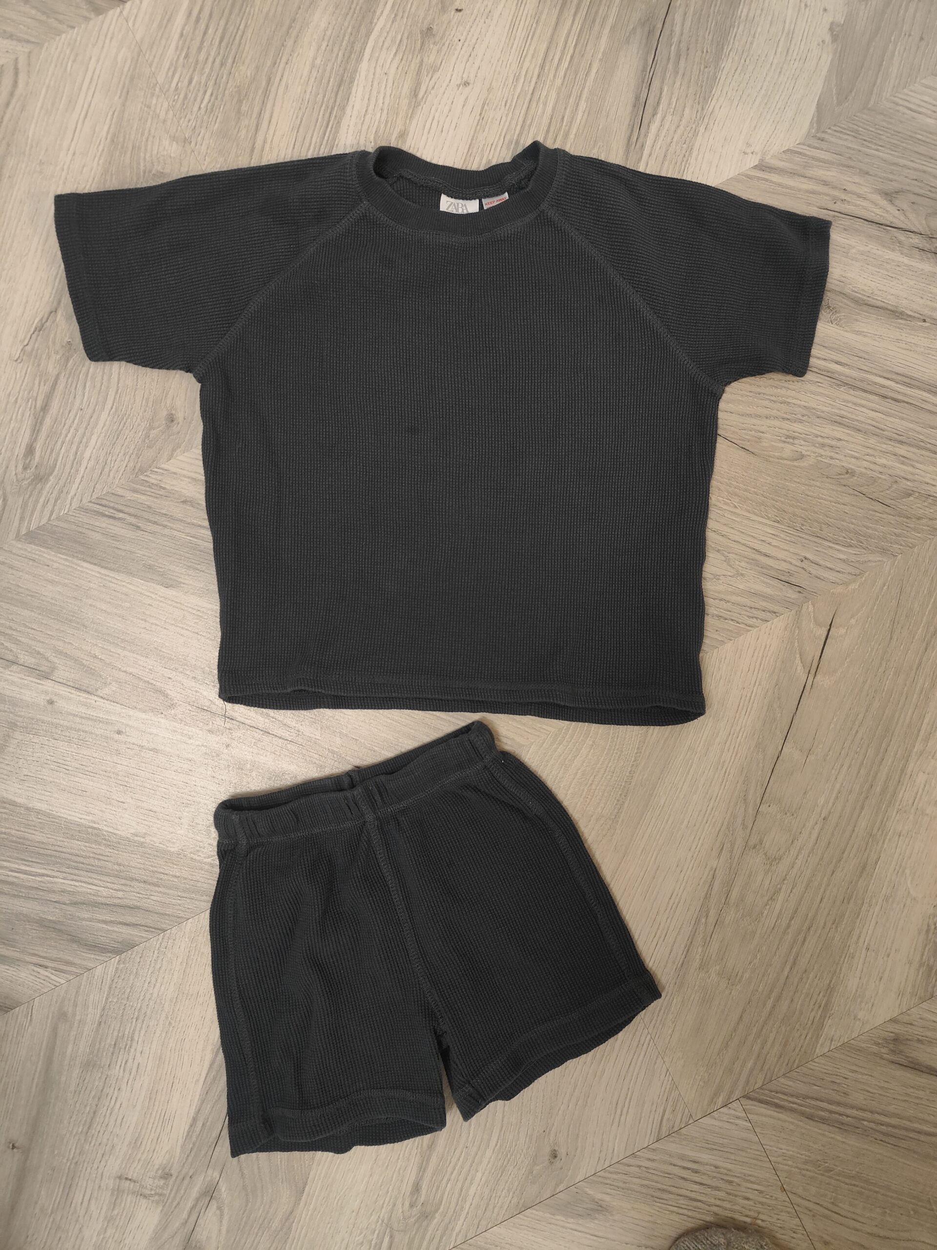 Zaran vohvelikangas setti , koko 116 vastaa kokoaan voi käyttää myös 110/116 koossa . Siistissä kunnossa. Väri tummanharmaa.